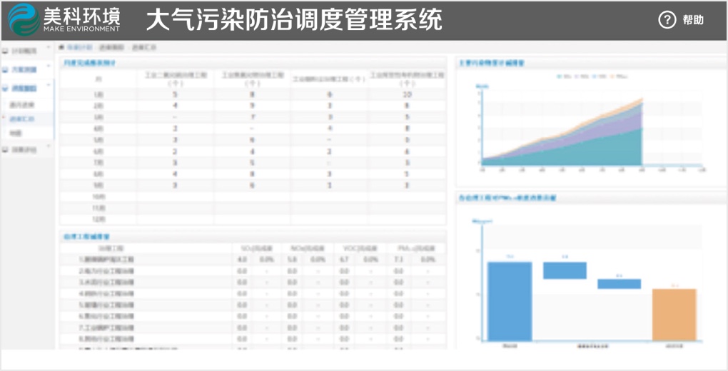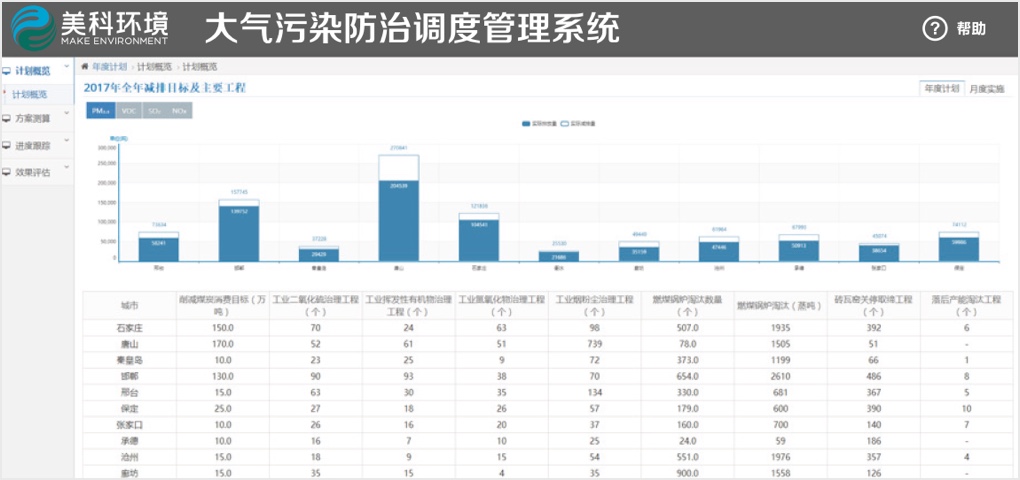 结合年度大气污染防治工作年度实施计划及月度进展统计制度,实现减排措施进展信息收集、调度管理与动态跟踪,全面支持排放清单动态核算和大气污染防治工作考核评估。