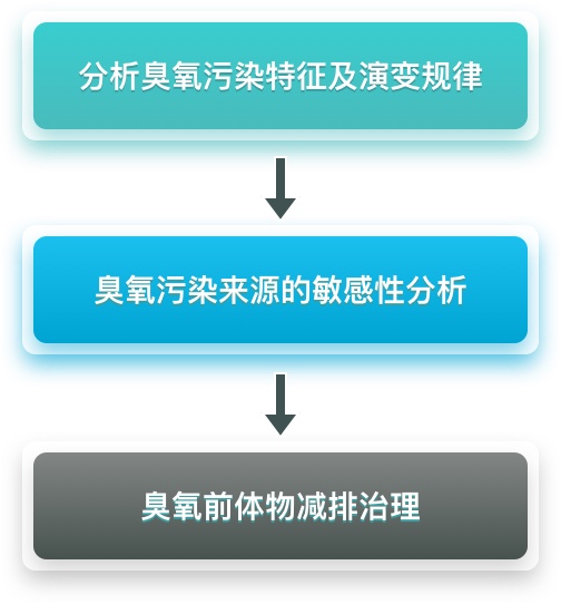 分析臭氧污染的特征和演变规律,研究臭氧浓度及其前体物VOCs和NOx排放之间的动态响应关系,识别前体物中关键活性组分,分析现在及未来各行业主要控制技术的成本效益,建立可行的臭氧污染防治和前体物管控策略。