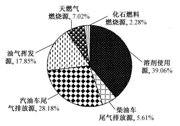 图3:北京市城区春季观测期间环境空气中VOCs主要来源贡献率