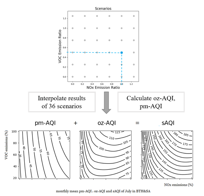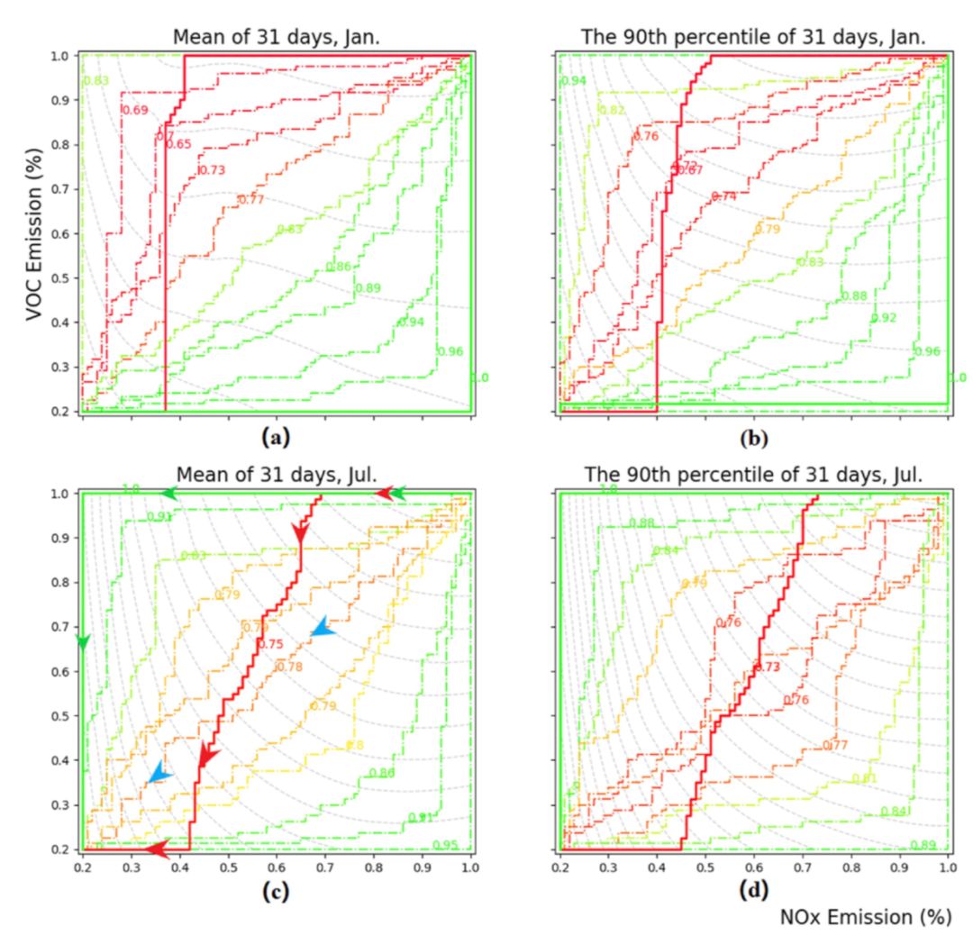 x和VOCs),通过耦合大气污染物人为源排放清单(MEIC)、区域空气质量模式(WRF-Chem)以及经验动力学组合模型(CEKMA),综合评估了经济有效的空气质量控制协同减排策略。该研究成果发表于Atmospheric Environment。