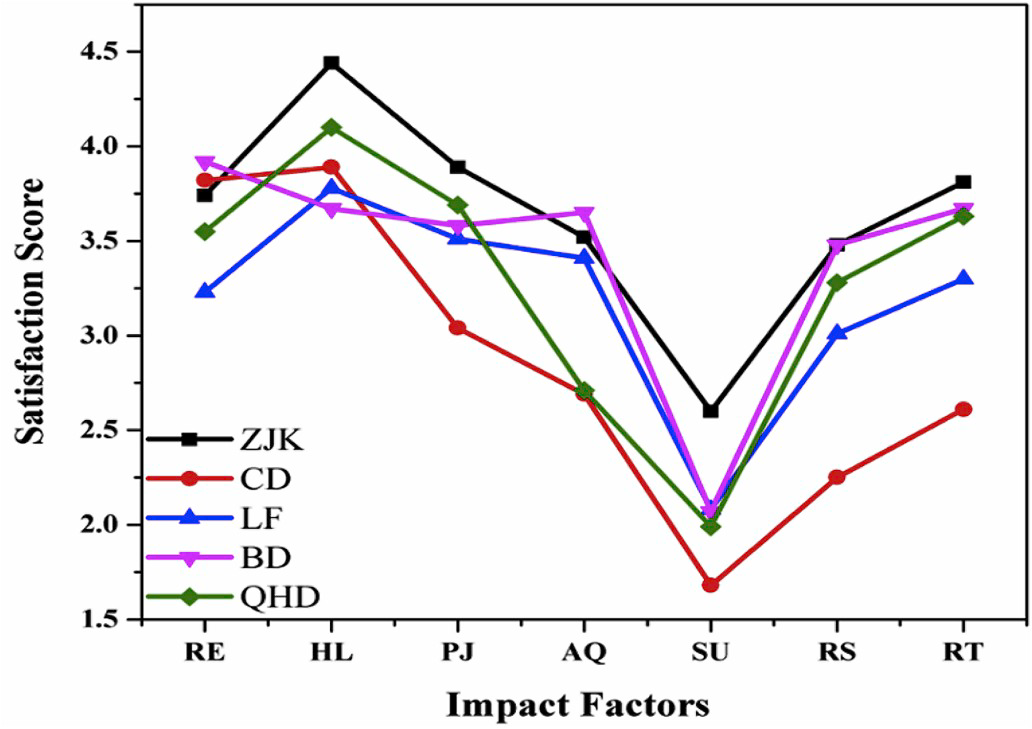在供暖水平(HL)方面,农村地区低质量的住房建筑保暖材料和壁挂炉影响了居民满意值(RS)。因此,政府未来应从政策或经济角度进一步完善居民住房节能改造,并加强对供暖管道线和燃烧设备的常规检查。