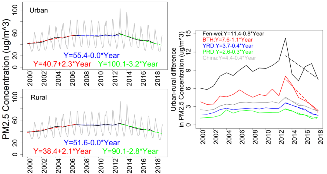 2.5浓度下降以及城乡PM