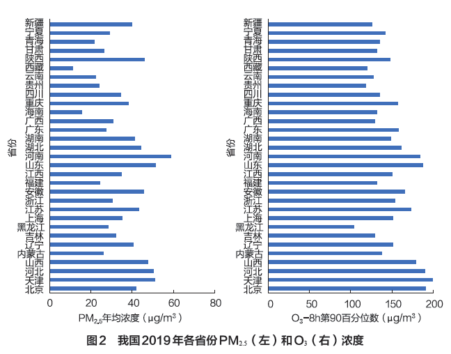 目前我国实施的环境空气质量标准中,PM2.5的年均浓度限值对应于世界卫生组织第一过渡阶段目标值,O3的日最大8小时浓度限值对应于世界卫生组织阶段目标值。2019年我国337个城市PM2.5年均浓度的均值是世界卫生组织准则值的3.6倍,而O3日最大8小时浓度第90百分位数的均值是世界卫生组织准则值的1.5倍。从中长期来看,我国的空气质量管理目标,需要在尽快使全国绝大多数城市达到目前环境空气质量标准要求的基础上,通过较长时间的持续改善,接近甚至达到世界卫生组织的准则值,以达到保护人体健康的目的。全球疾病负担研究中针对我国的分析表明,我国由于PM2.5暴露造成的人群疾病负担大致是O3暴露造成疾病负担的6倍。因此,从中长期的角度,可以在以大幅降低PM2.5浓度的基础上,协同推进O3浓度下降,减少大气污染对人体健康的影响。
