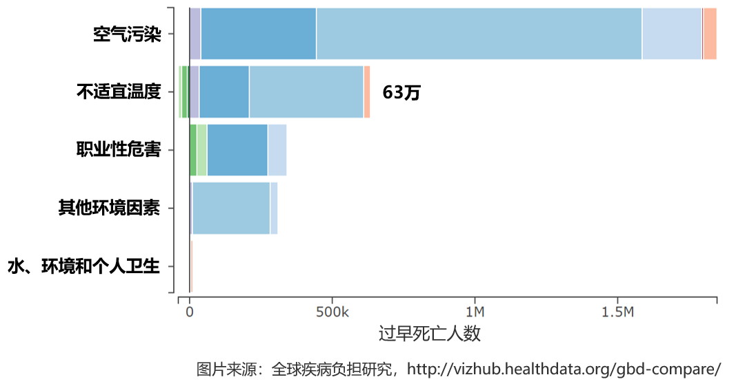 图2. 2019年我国归因于不适宜温度等环境因素的过早死亡人数