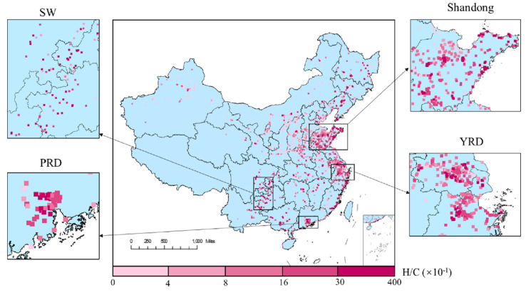 图1:全国H/C因子空间分布图(Li, Cai, et al., ES&T, 2020)