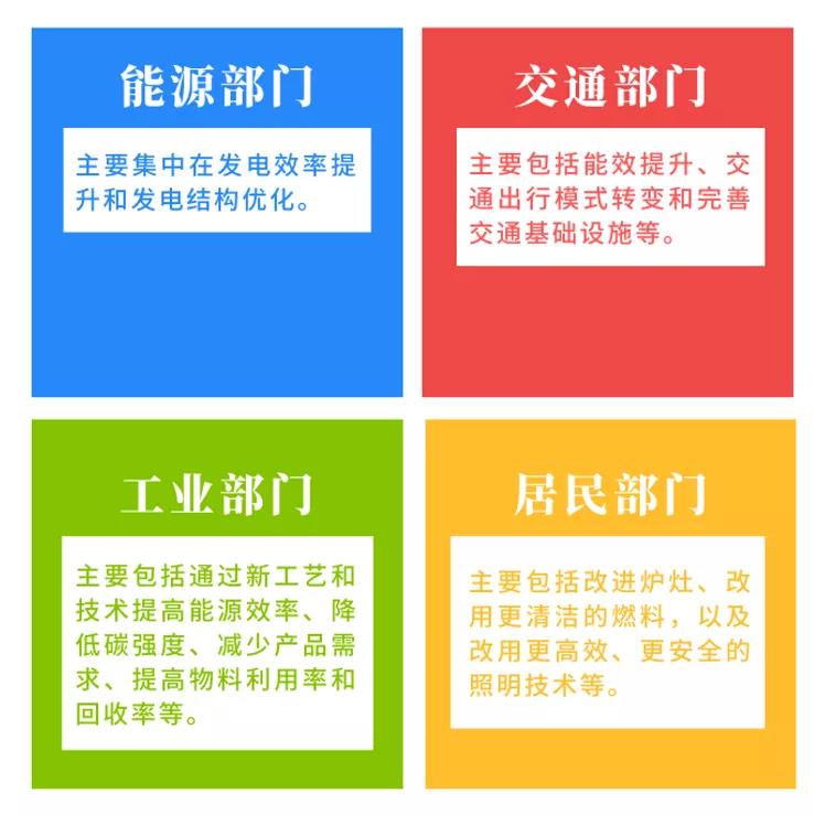 能源部门、交通部门、工业部门、居民部门应是落实大气污染物与温室气体协同控制的重要领域。结合本行业的特点和现状,上述四大部门可重点围绕能效提升和结构转型等方面细化减排措施,进一步加强大气污染物和温室气体排放协同控制(图2)。此外,还可从管理措施入手,如选择植物源挥发性有机物排放相对较少的行道树等。