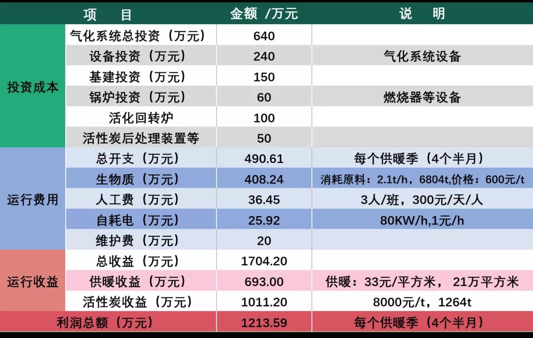 2018年,河北省滦平县开展生物质城镇清洁供暖联产活性炭工程,供暖面积达21万平方米,覆盖范围包括居民区和学校。据统计,该工程经济效益好(取暖收益和活性炭收益),一个供暖季即可收回成本(图2)。